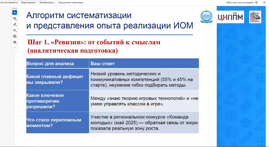 В целом, алгоритм для педагога, как превратить свой опыт в публичную презентацию для коллег, не скатившись в «отчет о проделанной работе», а показав систему управления собственным развитием, состоит из пяти шагов.